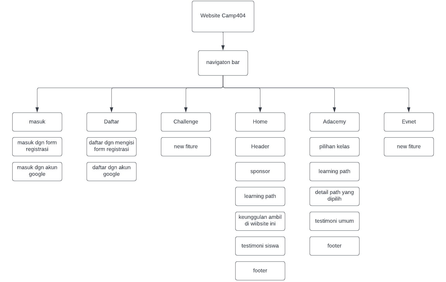 website agar mudah dimengerti oleh pengguna, berikut IA pada Website Camp404