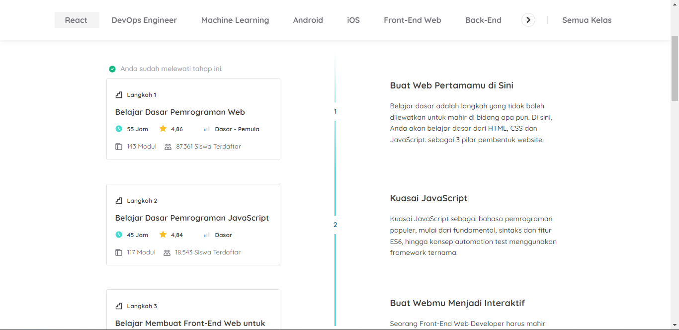 flownya sangat mudah telebih lagi kami menambahkan fitur learning path untuk mempermudah siswa memilih