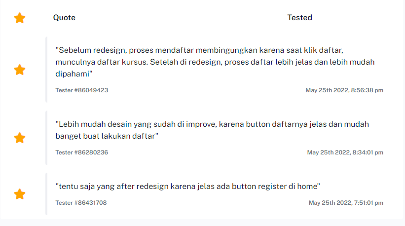 Dari hasil diatas bisa disimpulkan bahwa User lebih memilih website setelah di redesign karena lebih mudah dan
